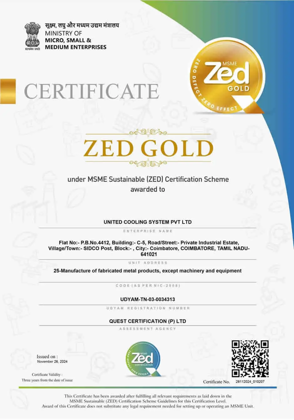 ZED stands for Zero Defect Zero Effect – a flagship initiative by the Quality Council of India (QCI) in collaboration with the Ministry of Micro, Small, and Medium Enterprises (MSME). The ZED Certification for MSMEs encourages businesses to: