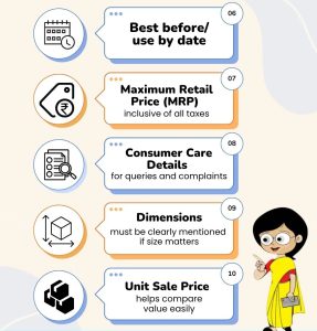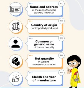 - Net quantity of product (in case of unit for litre, the letter ‘L’ will be used to indicate quantity)